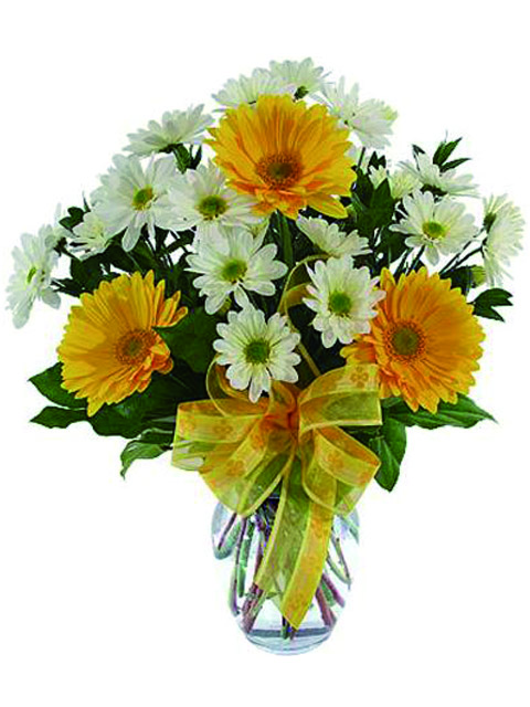 Bouquet di gerbere gialle e margherite bianche.
